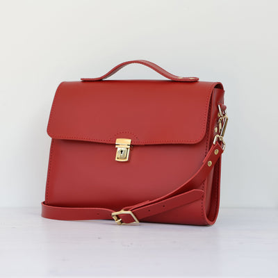 Our crossbody leather satchel bike bags feature a lockable bag flap to keep your possessions secure whilst on your bike and a strap holder to keep the long strap safely tidied away whilst you cycle.