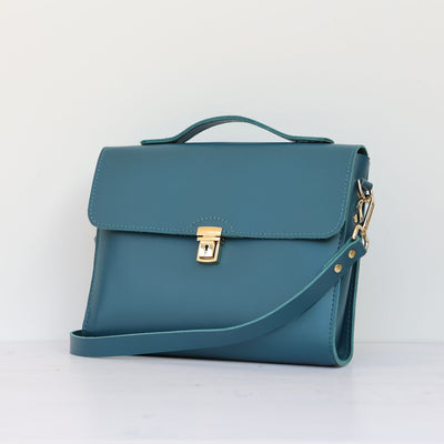Our crossbody leather satchel bike bags are handmade in England using locally sourced leather and attach to your bike pannier using a pannier clip system from one of the very best manufacturers.