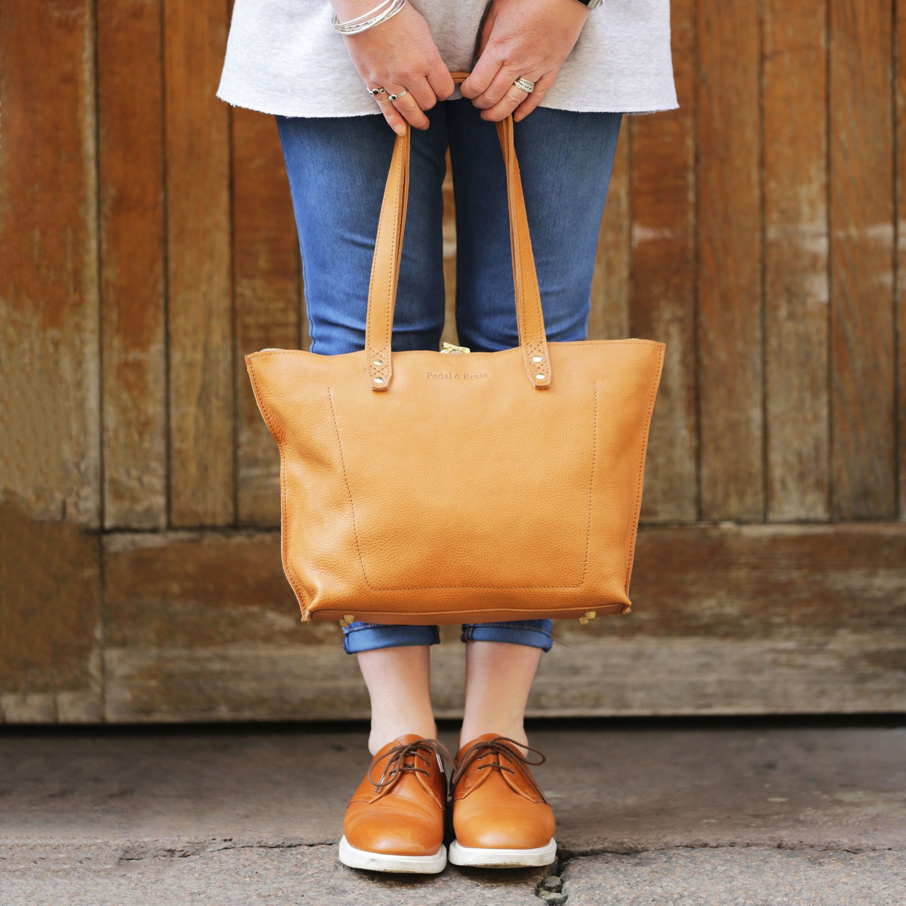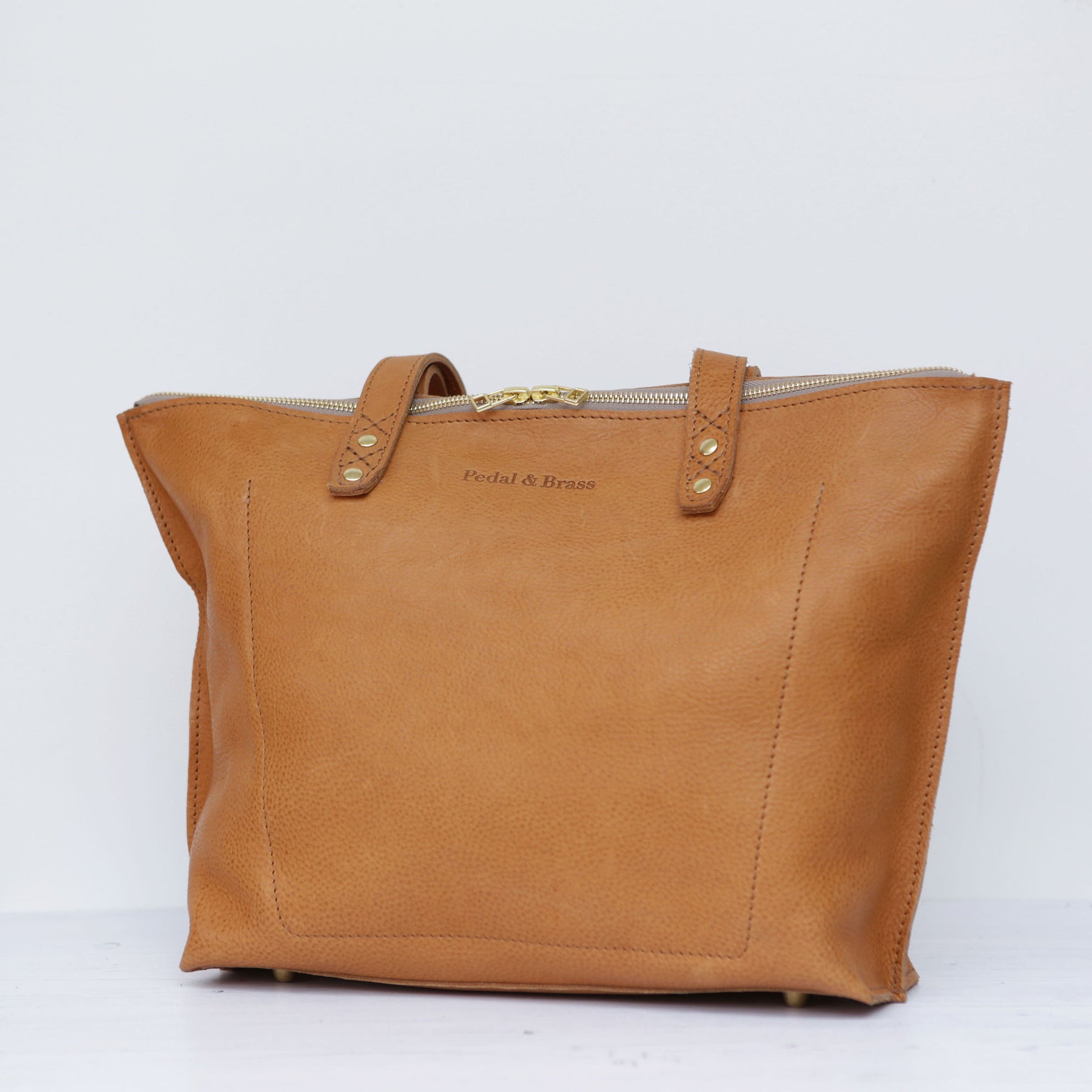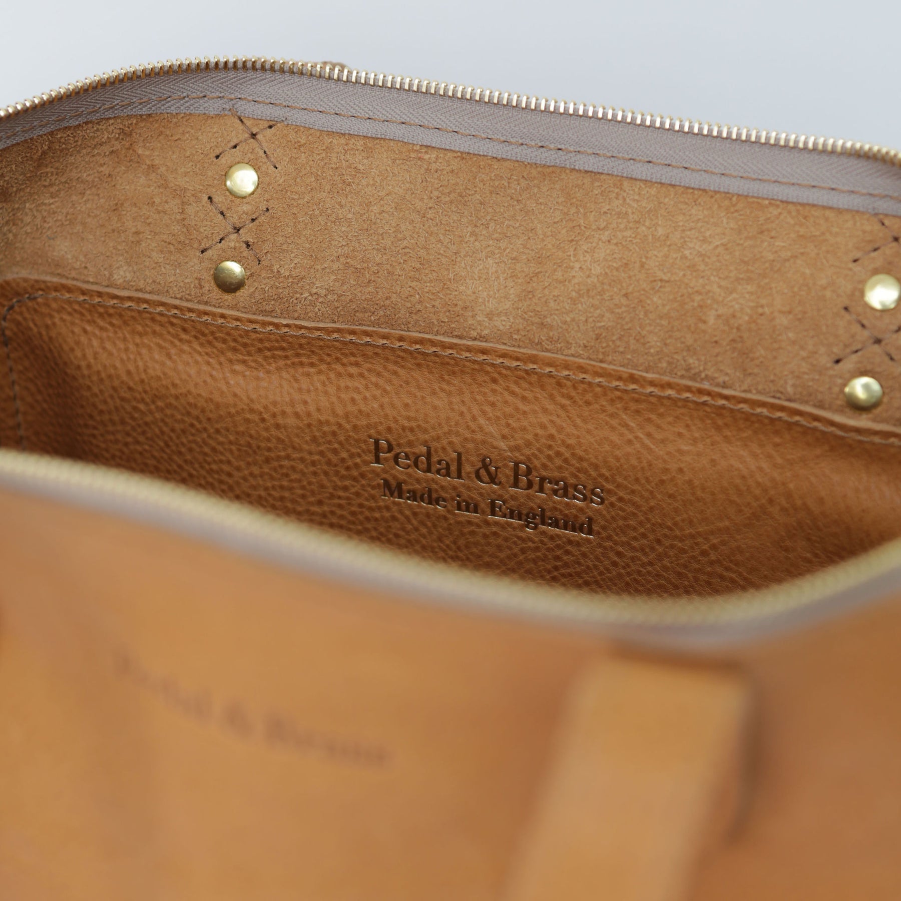 The tan Cavendish is made from the finest vegetable tanned, full grain, tumbled leather. It has been given an initial application of Collonil Carbon Pro weather protection spray and can be protected further by purchasing one of our Pedal & Brass reflective waterproof rain covers - made to fit our bags perfectly! See our Caring for Your Bag guide for further information.